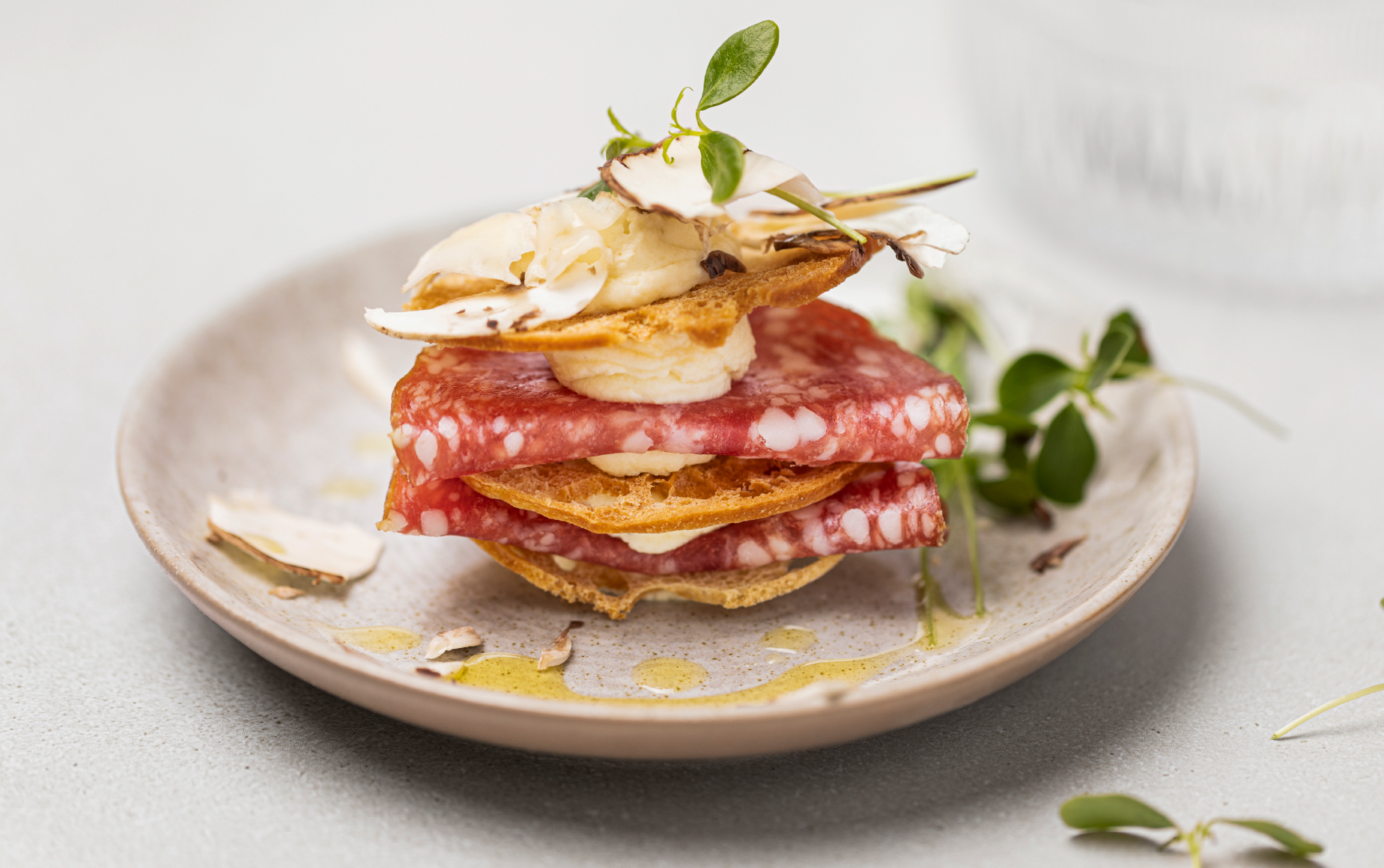 Für unser Rezept für Wiesenberger Brotchips brauchst du neben unserer Wiesenberger Salami nur wenige weitere Zutaten: Käse, etwas Frisches wie Champignons und Kresse sowie Ciabatta – oder ähnliche Zutaten, die dir gerade zur Verfügung stehen.